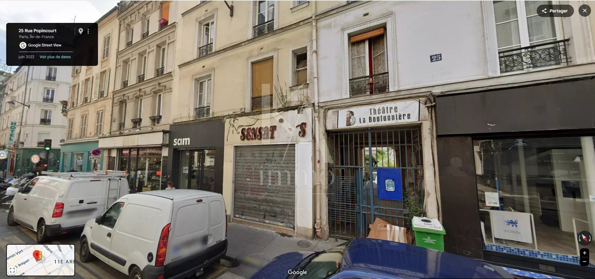 Bureaux en fonds de cour situés au 25 rue Popincourt, à l'angle des rue Sedaine et Breguet, au pied du métro Voltaire.